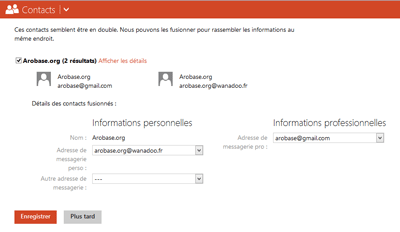 Outlook.com fusionne alors les fiches des contacts.